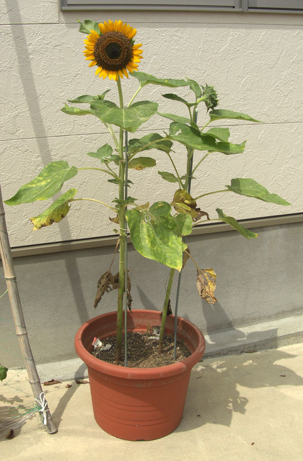 ひまわりは小さなものから大きなものまでいっぱい植えたんですが、大きな鉢をつかったやつはやはり一番花が大きくなりました。