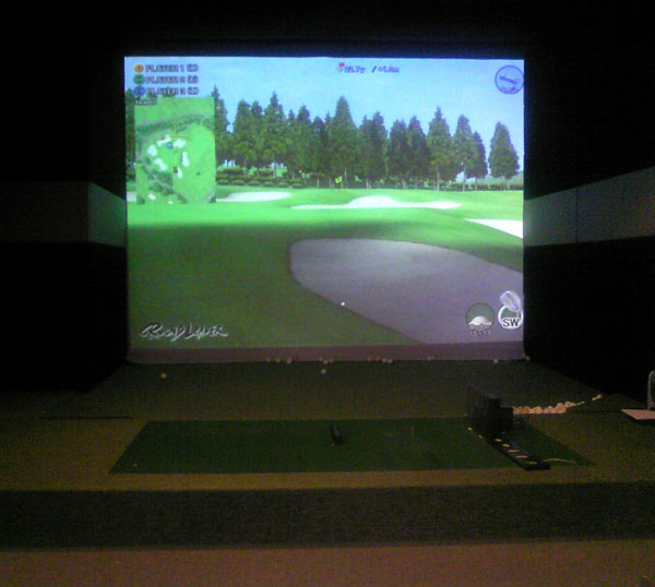 横幅100インチ以上のどでかいスクリーンにゴルフコースが表示されていて期待した以上の設備でした。