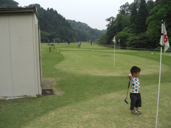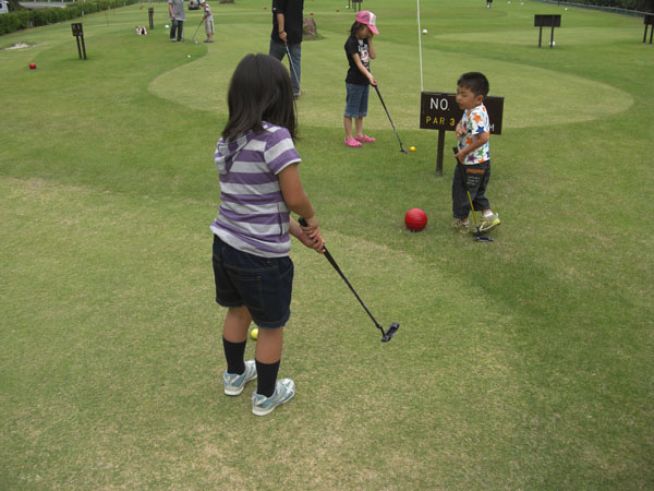 来週、再来週と2週間連続でゴルフにいくので普段練習できないパットの練習がしたくて行ったんですが・・・全く練習になりませんでした・・・。というのも芝自体が全くゴルフ場のものとは違ってて砂が見え隠れしてるようなグリーンなんです・・・。まぁ、子供たちが楽しめればいいやと思い、レジャーに頭を変えて家族で楽しみました。