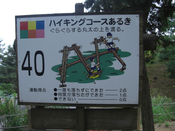 さて、ゴルフも終わり、まだ時間も14:30頃だったので何か子供たちが楽しめるところがないかなぁと地図をみてたらこの公園内にフィールドアスレチックなるものを発見。上の子が乗り気だったので早速いってみることに。