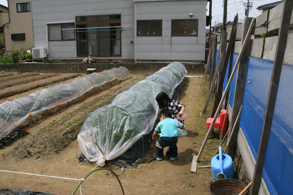 苺は写真の1列と、近所の保育園の子供たちのために別の場所にも5列ほどの畑があります。
