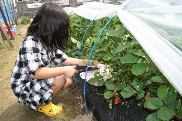 子供たちが苺が大好きなので孫のためにと、去年からおじいちゃんが畑で苺を作るようになって、毎年初夏は苺狩りができるのです。