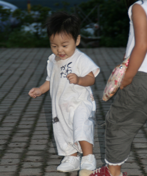 この加賀屋の横は海になってて波際にちょっとしたヨットハーバーみたいな歩行者路があって、ここで子供を遊ばせてました。