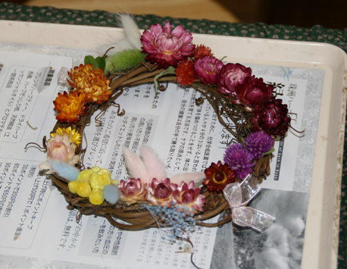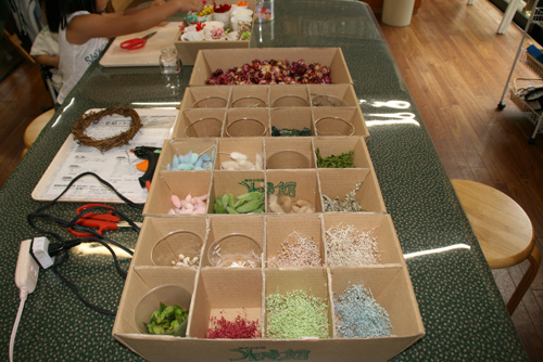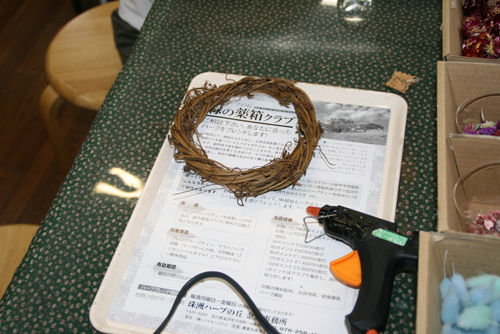 せっかくだから受付の建物の中でハーブを使って工作リース作りができるということなので嫁と子供にやらせることに。