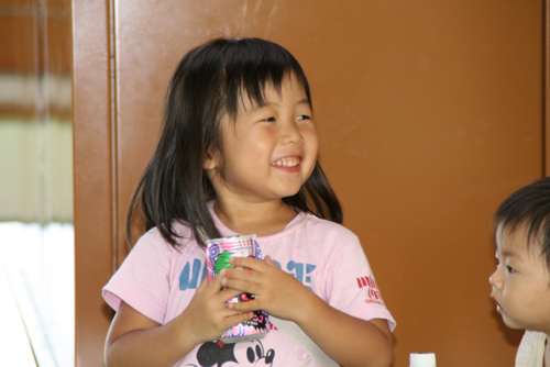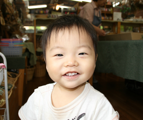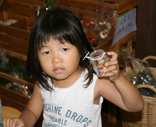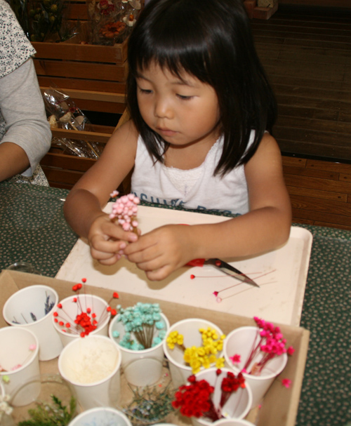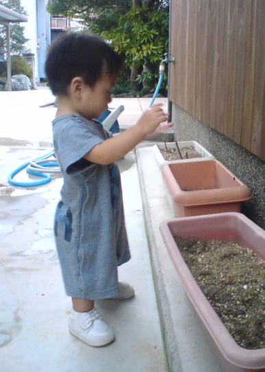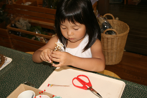 僕も作りたーーいってな感じでママとお姉ちゃんのハーブ工作にちょっかいを出してました。