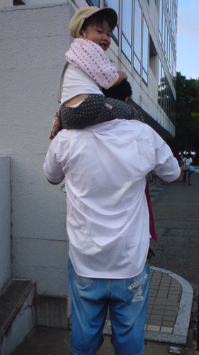 娘(16kg)を肩車して延々と街を歩きました。これだけでも相当なトレーニングになるんですよね。