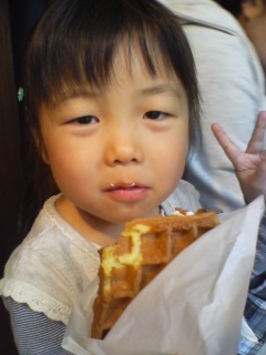 子供をつれて繁華街をぶらっと歩き回り、ワッフルを買ってあげました。